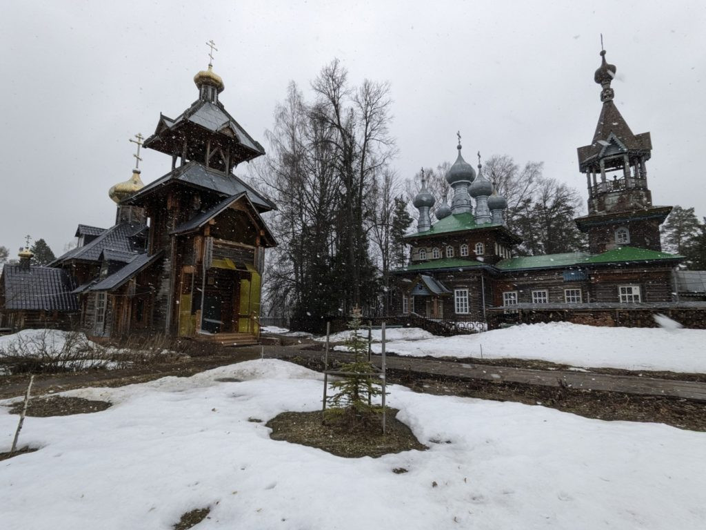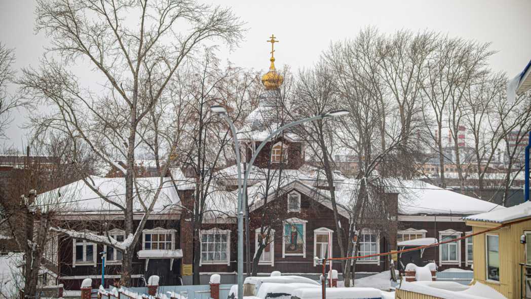 Храм Алексия Московского. В руках прихожан — пушистые веточки вербы