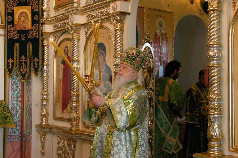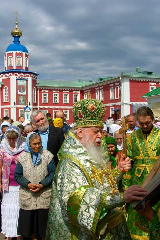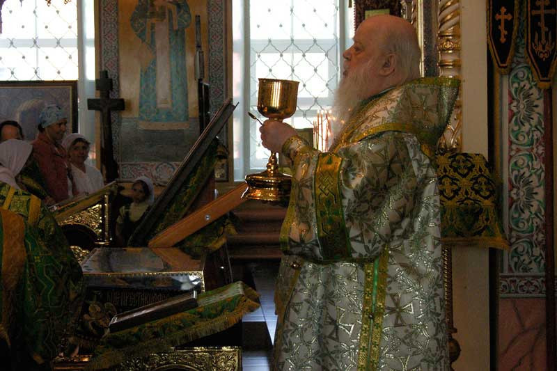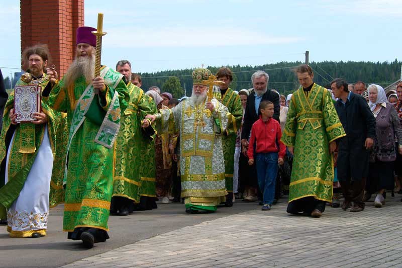 Высокопреосвященнейший митрополит Николай в этот день совершил Божественную Литургию в Петро-Павловском храме Мало-Дивеевского Серафимовского женского монастыря села Норья по случаю престольного праздника храма. После литургии был совершен крестный ход вокруг храма, затем духовенство и верующие благоговейно приложились к чудотворной иконе Божией Матери "Почаевская". Фото "Православные Вести. Ижица"