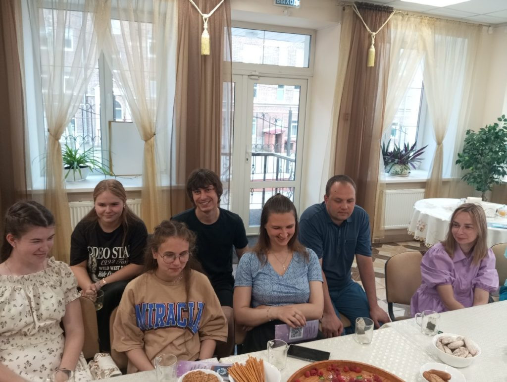 Затем ребята беседовали с иереем Иоанном Пушкарёвым. Батюшка поделился историей своего прихода к вере. В честь прошедшего дня памяти святых Петра и Февронии поговорил с ребятами о ценностях православной семьи.