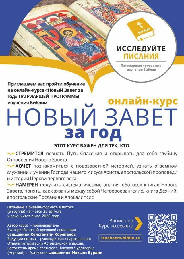 Курс стартует 25 августа. Это уникальная возможность глубже понять Священное Писание вместе с ведущими российскими библеистами и опытными духовными наставниками.