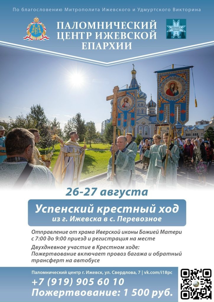 В преддверии праздника Успения Пресвятой Богородицы по благословению митрополита Ижевского и Удмуртского Викторина состоится традиционный покаянный Крестный ход из Ижевска в Успенский женский монастырь села Перевозное с 26 по 27 августа 2025 года