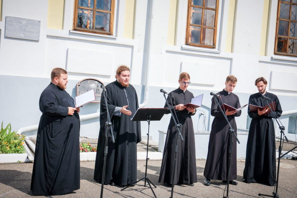 Далее праздник продолжился на территории собора. Здесь состоялся концерт хорового коллектива Сретенской духовной академии. Для верующих была организована трапеза.