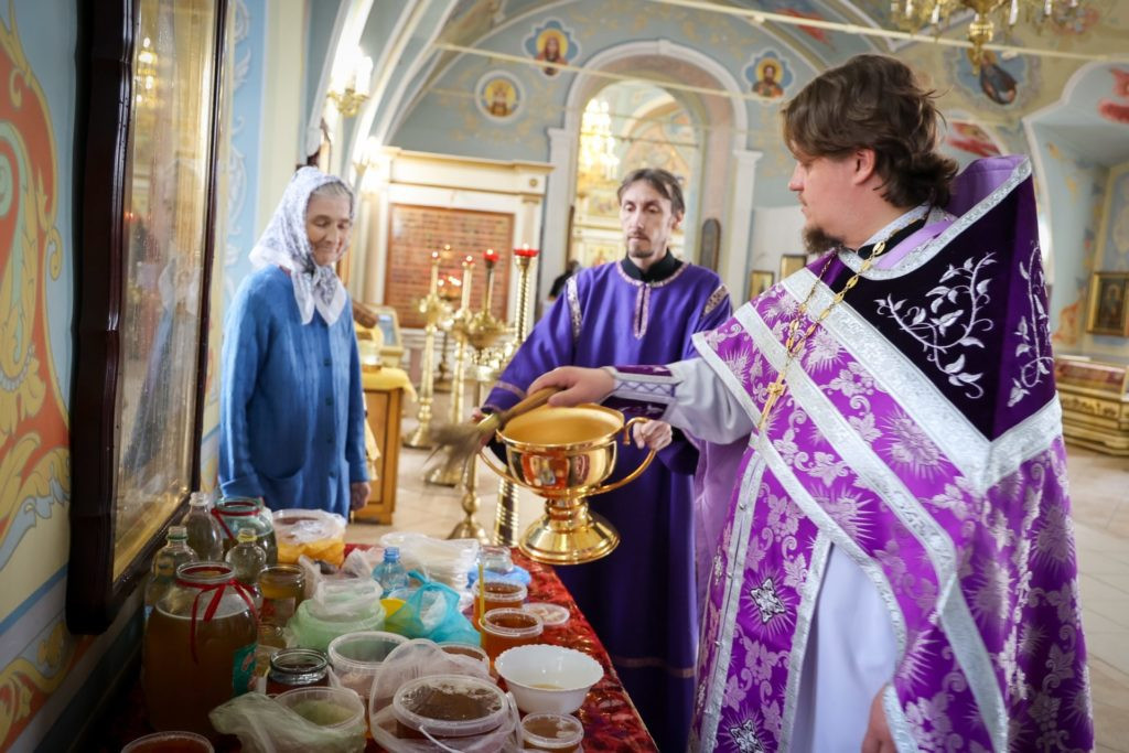 Также в это утро был совершен водосвятный молебен и освящен мёд нового урожая.