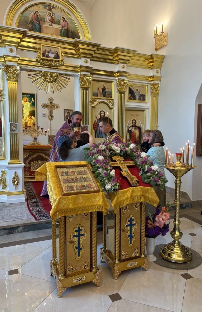 Кроме того, в этот праздник на службе происходит вынос Креста для поклонения верующих. В течение церковного года это происходит лишь трижды: на Крестопоклонную неделю в Великий пост, а также в праздники Воздвижения Креста Господня (27 сентября) и Изнесения Четных Древ Животворящего Креста Господня (14 августа).