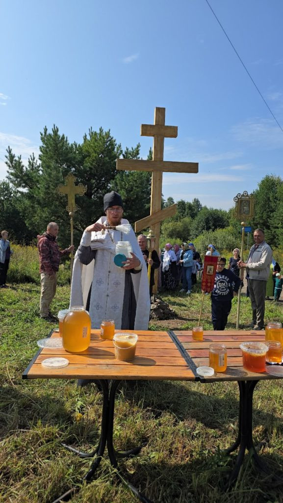 Крестовоздвиженское. Освятили новый поклонный крест и мед нового урожая
