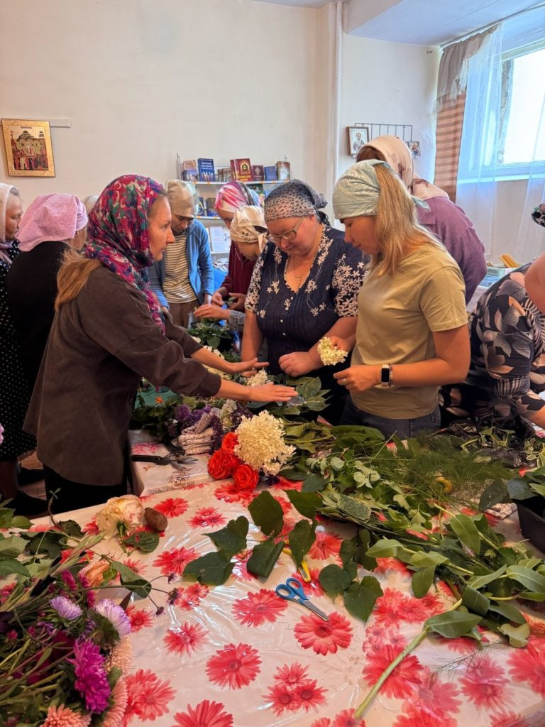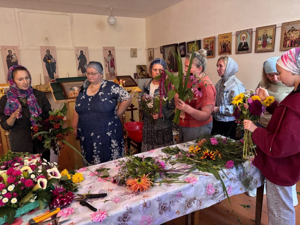Все участники мероприятия увлечённо работали под руководством профессионала и создали свои первые композиции и букеты, которые могут стать прекрасным оформлением к приближающемуся празднику Преображения Господня.