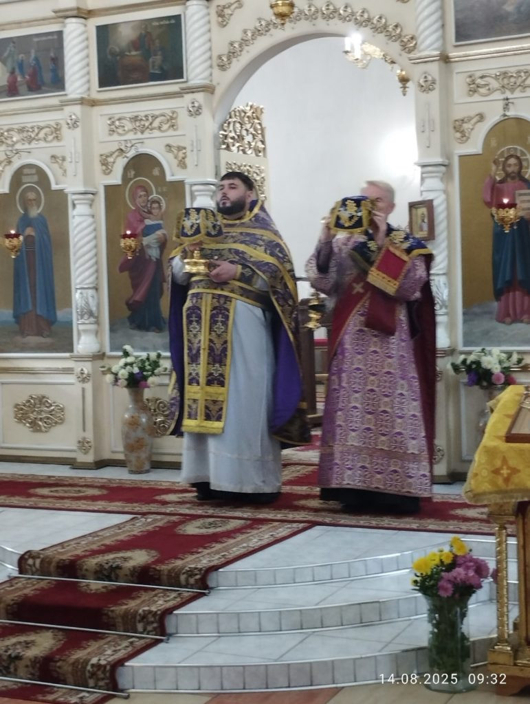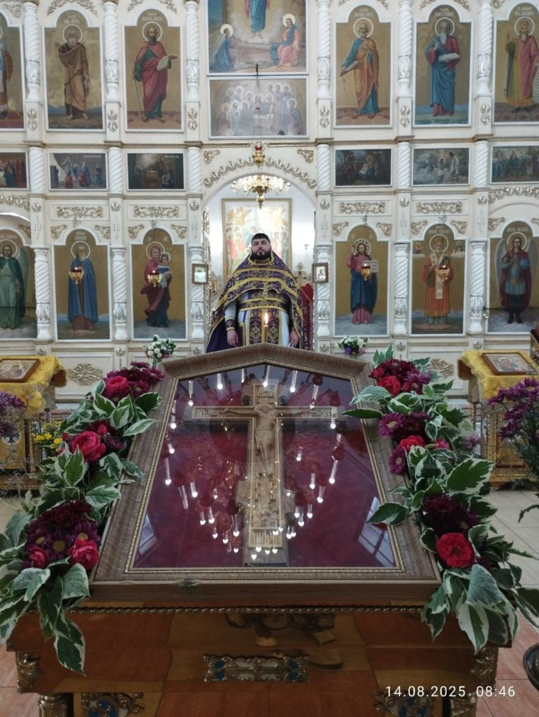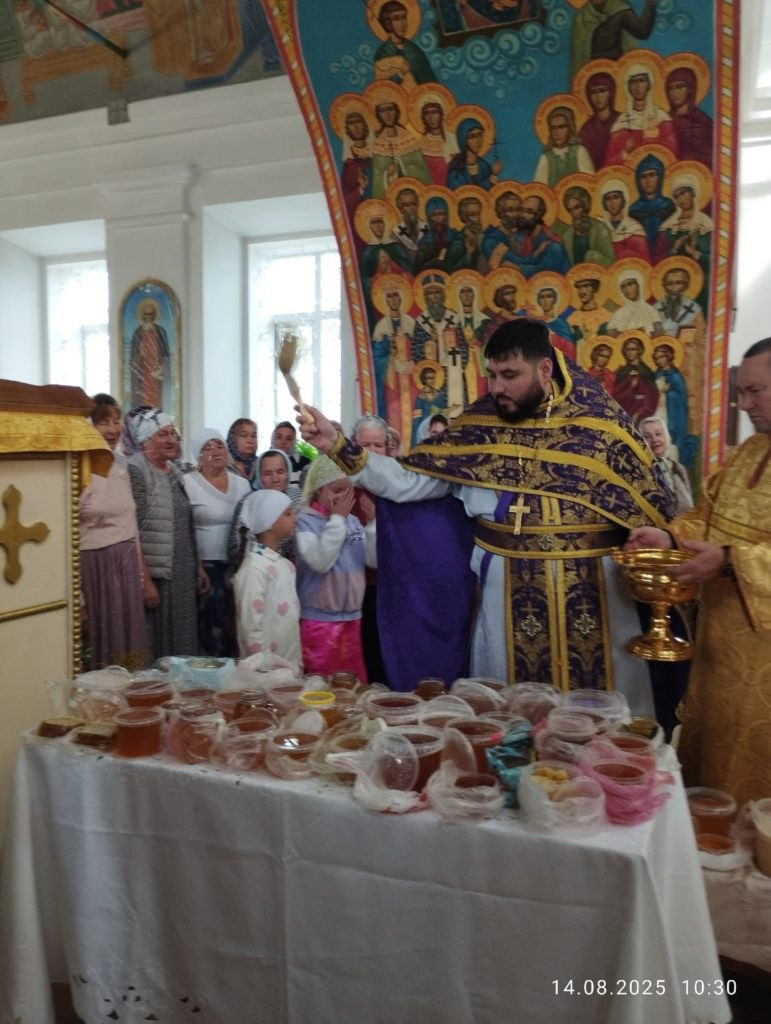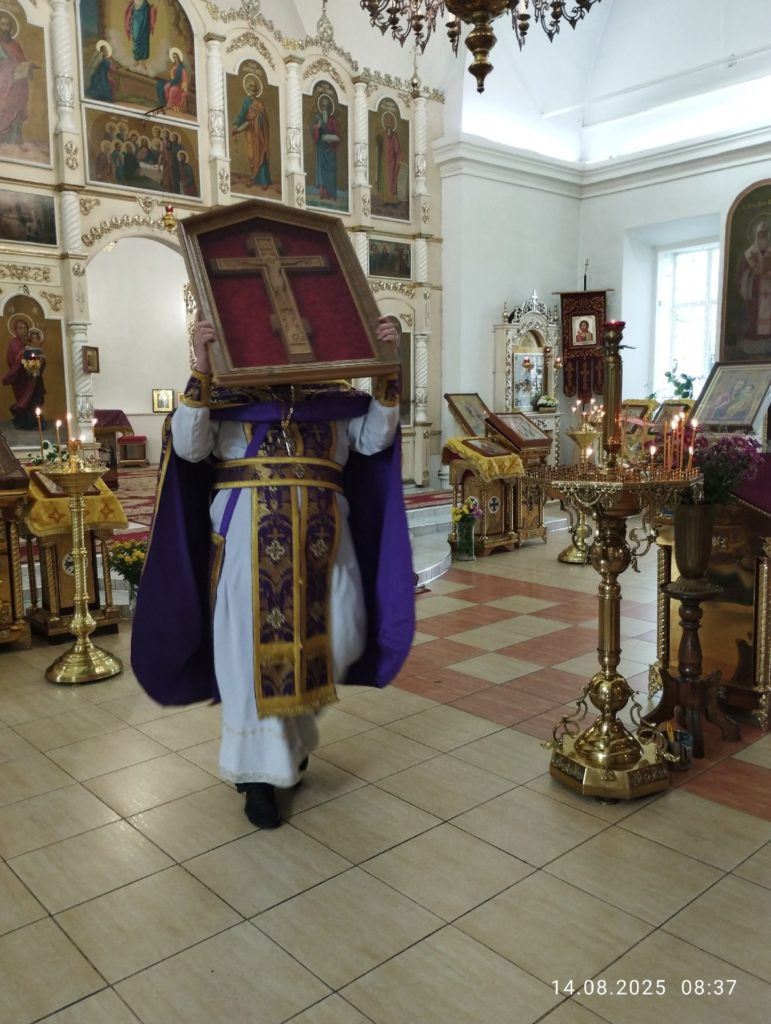 14 августа 2025 года в храме Святителя Николая Чудотворца с. Завьялово отмечалось сразу два важных события – начало Успенского поста и праздник Происхождения (изнесения) Честных Древ Животворящего Креста Господня (Медовый Спас).
