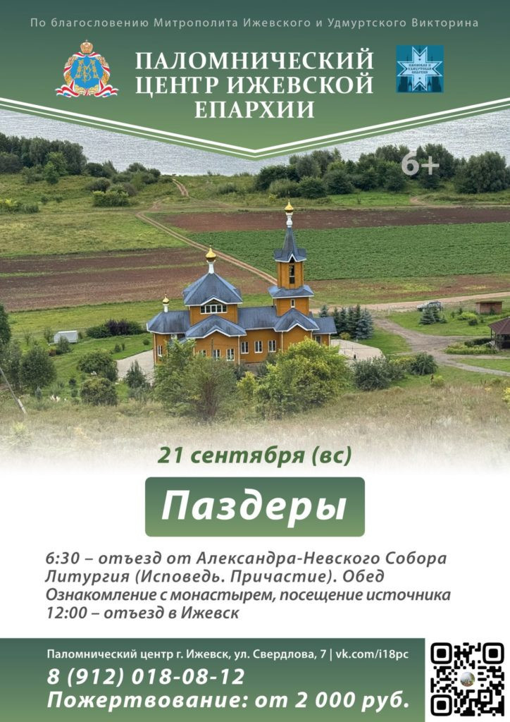 Паломнический центр Ижевской епархии приглашает в Тихвинский мужской монастырь с. Паздеры Воткинского района 21 сентября
