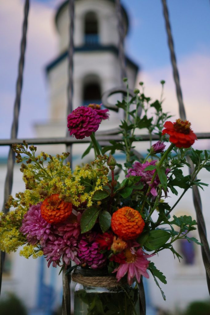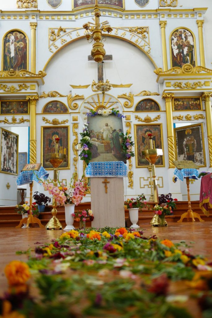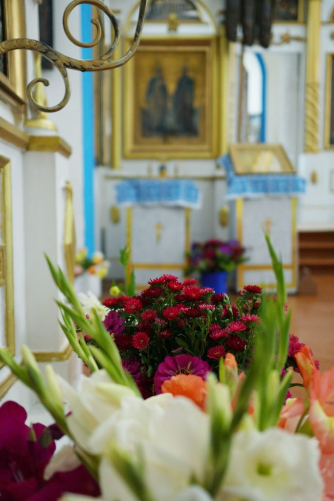 Финиковых пальм у нас в Короленко не растет, но посмотрите сколько цветов принесли Матери Бога наши прихожанки.