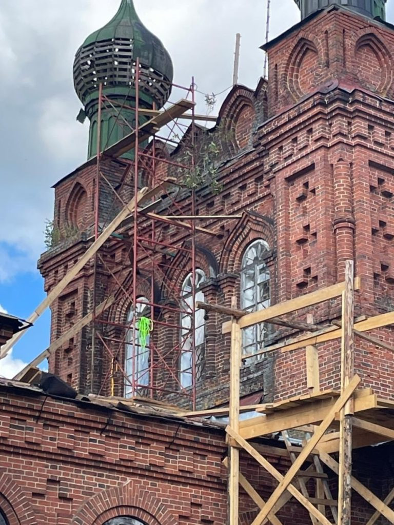 В с. Тортым Кезского района продолжаются работы по реставрации храма Покрова Пресвятой Богородицы. За неполный августовский месяц удалось отремонтировать стропильную систему. На данный момент идёт подготовка крыши к покрытию кровельным материалом, а затем запланирована реставрация большого центрального купола. Для этого уже возводятся леса. Большинство элементов конструкции купола прогнило и подлежит замене.