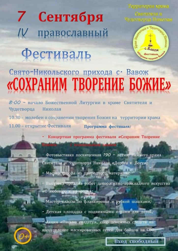 В Вавоже состоится православный экологический фестиваль «Сохраним творение Божие»