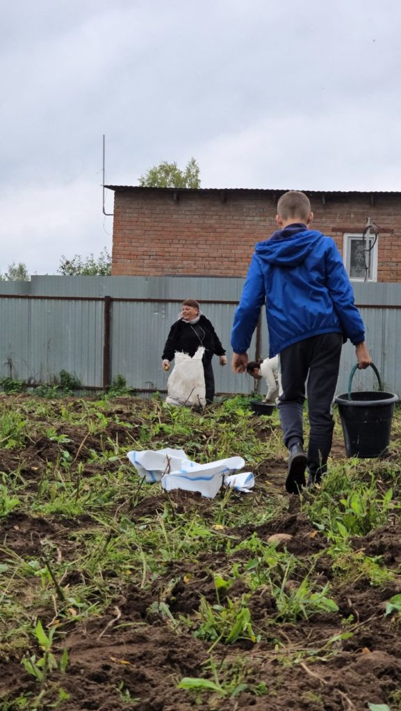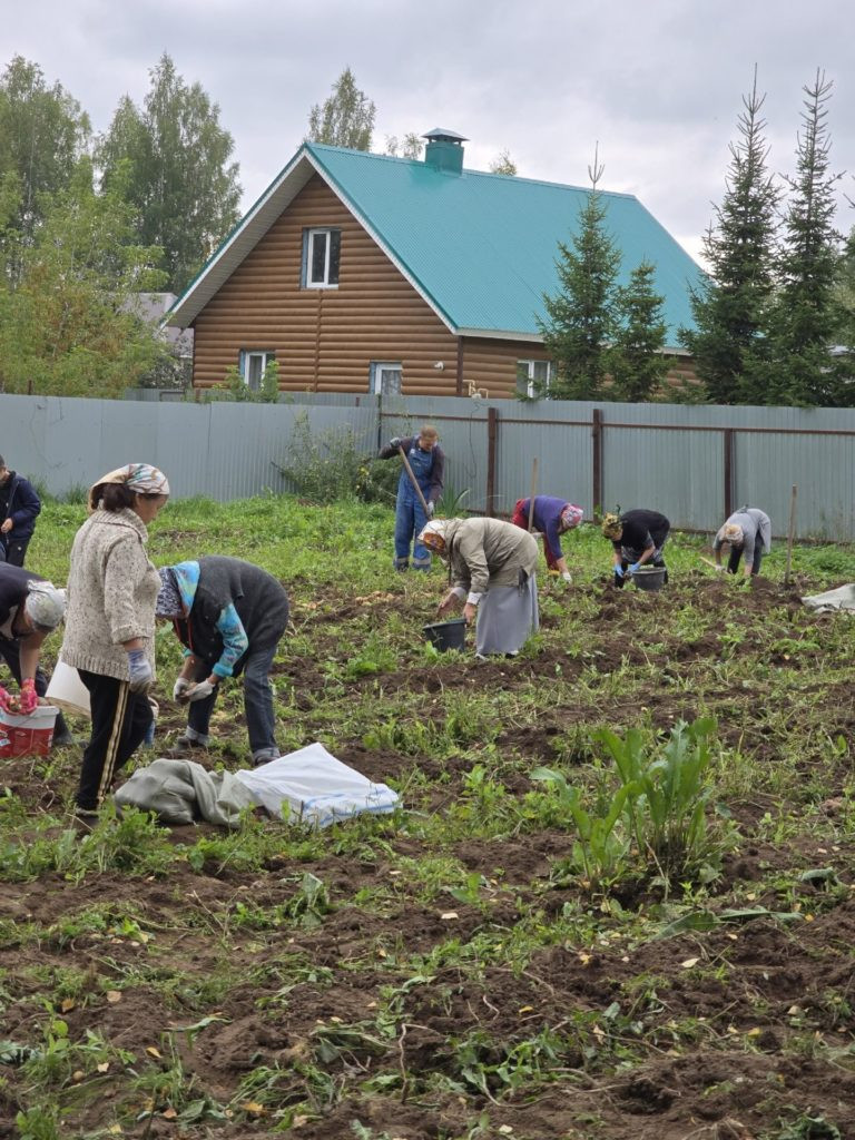 После поклонения кресту община разделилась: одни занялись обустройством новой иконной лавки, перенося туда церковную утварь, а другие отправились на приходской огород, чтобы помочь с уборкой урожая картофеля. В этот день особенно ощущалось единство, взаимопомощь и радость, царившие среди прихожан.