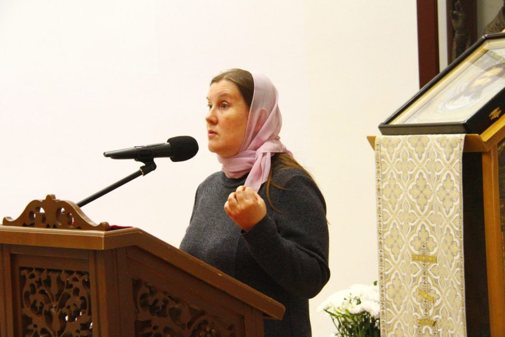 Психолог Спасо-Преображенского кафедрального собора г. Глазова, магистр педагогики Е.В. Тихонова презентовала слушателям методическое пособие по организации работы по утверждению трезвости в образовательной среде на примере 13-летнего опыта функционирования волонтёрского отряда за ЗОЖ «Атлантида» при духовно-просветительском центре Глазовской епархии.