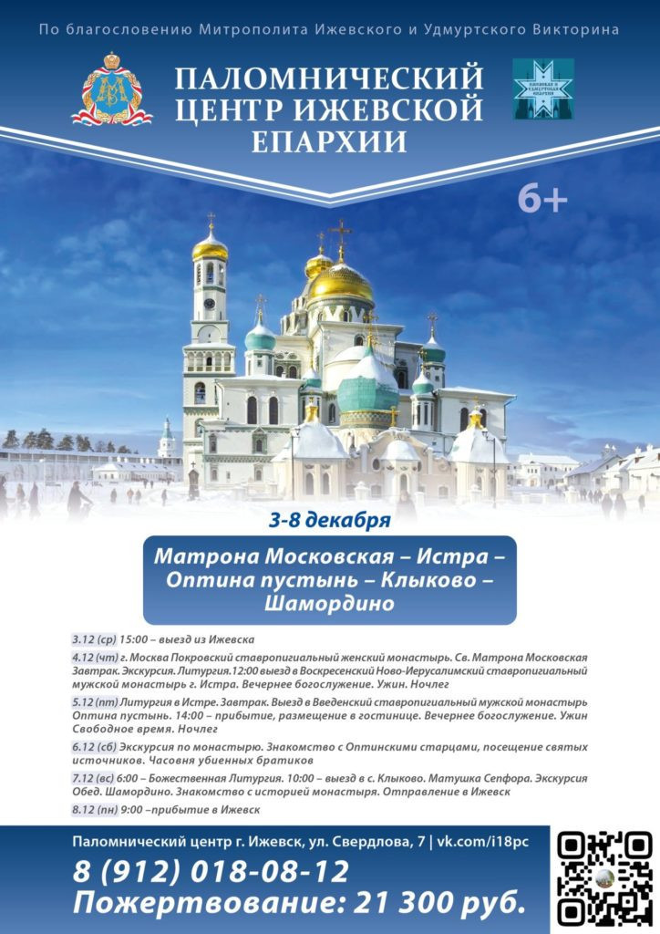 Паломнический центр Ижевской епархии приглашает в поездки в ноябре — декабре: