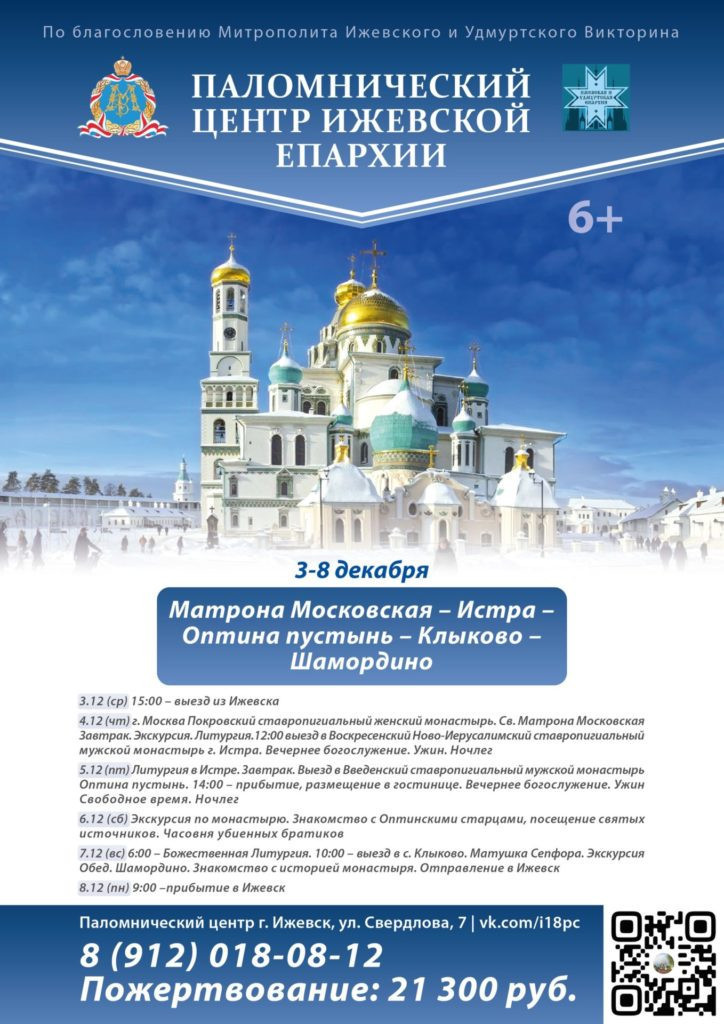 Дорогие друзья, продолжается запись в поездку по святым местам Подмосковья и Калужской земли с 3 по 8 декабря.