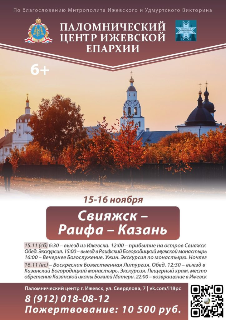 Дорогие друзья, продолжается запись в поездку по маршруту: Свияжск-Раифа-Казань С 15 по 16 ноября