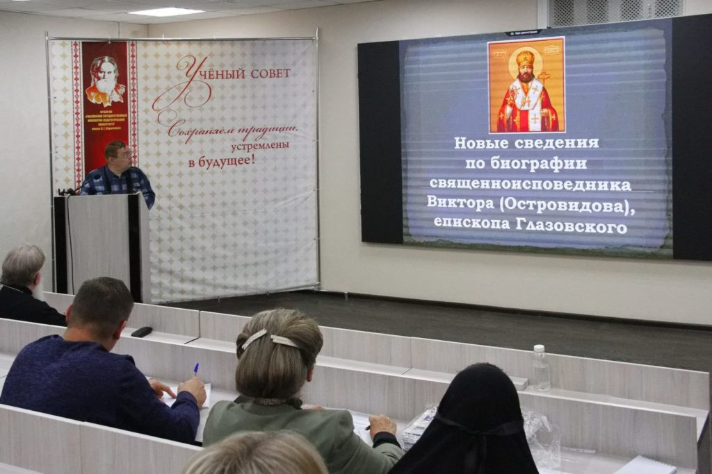 Пленарное заседание завершилось выступлением архивиста Глазовской епархии Г.А. Кочина, который представил доклад на тему «Новые сведения из биографии священноисповедника Виктора (Островидова), епископа Глазовского». Он дополнил и уточнил имеющиеся сведения о судьбе и личности владыки, опираясь на новые документы, обнаруженные в архивах и научных изданиях.