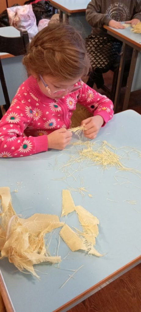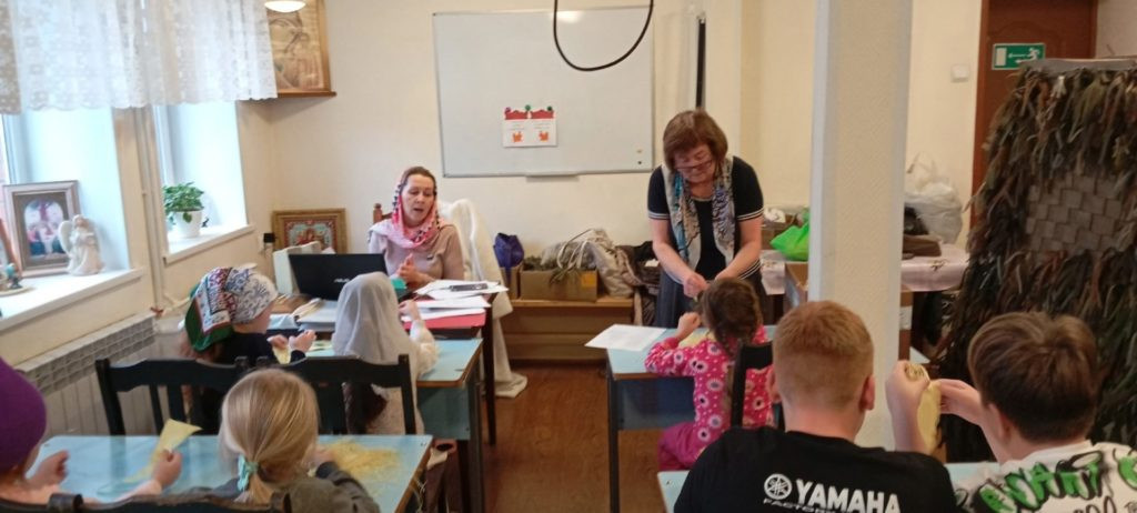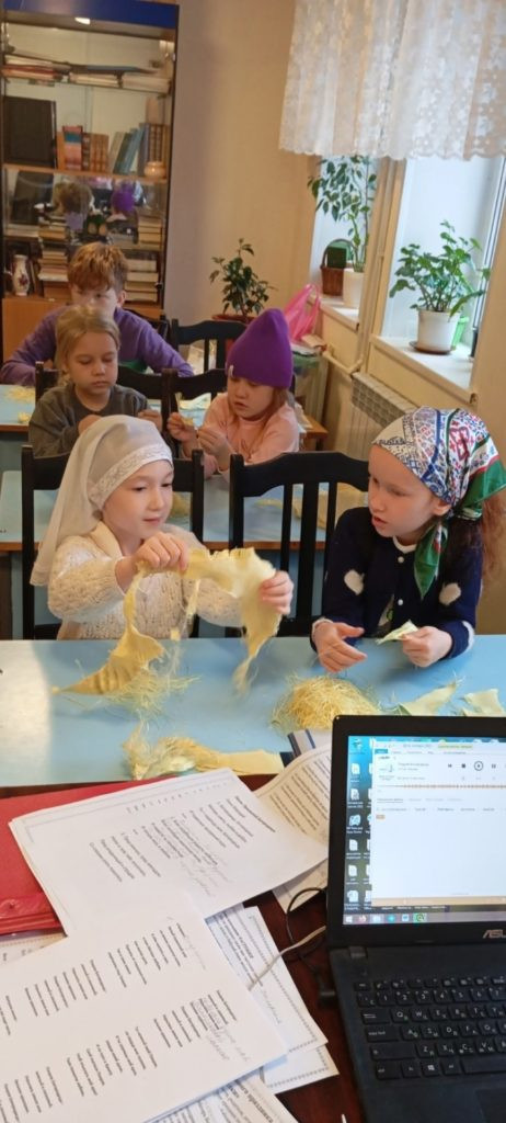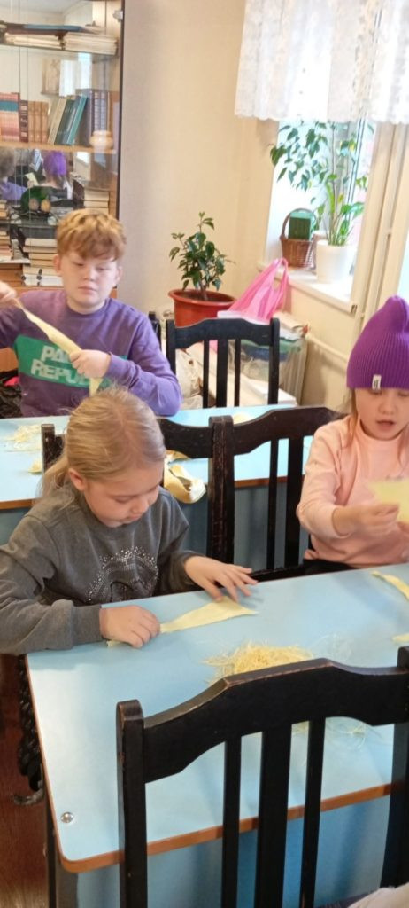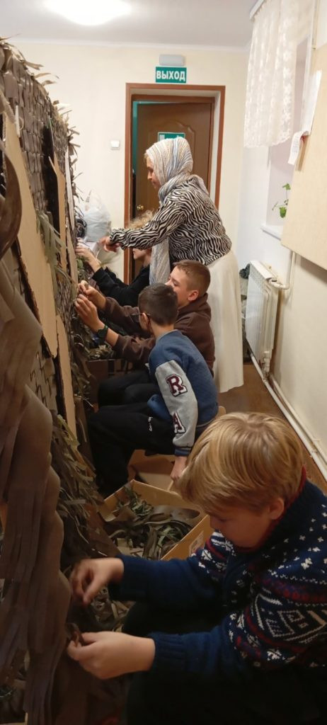 Наши дорогие ученики воскресной школы, от самых маленьких до старших, с энтузиазмом взялись за важное дело. Они трудились над созданием маскировочных сетей, а также распушали специальный материал, который станет надежной защитой для наших воинов. Этот материал, как щит, способен остановить осколки, спасая жизни и даруя надежду.