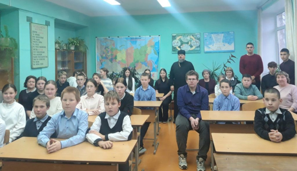 19 ноября 2025 года в Старободьинской средней школе состоялась встреча педагогов и учащихся с настоятелем храма Воскресения Христова с. Кизнер иереем Виталием Маркиным.