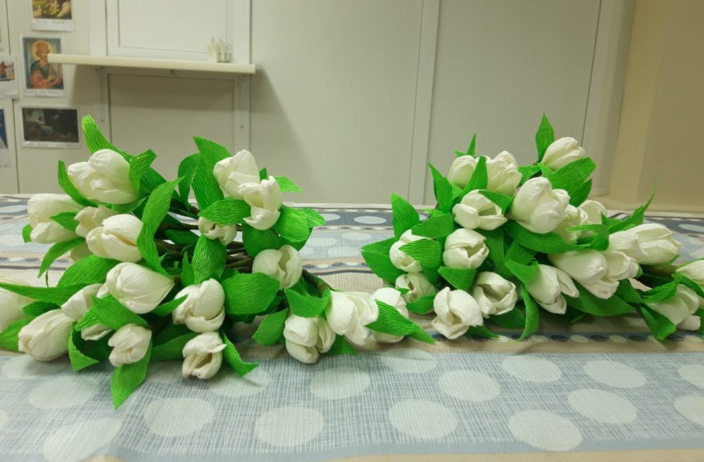 Прихожане храма Воскресения Христова с. Кизнер и воспитанники воскресной школы присоединились к благотворительной акции «Белый цветок». Под руководством преподавателя по творчеству смастерили прекрасные белые цветы, которые будут подарены за посильное пожертвование на лечение детям.