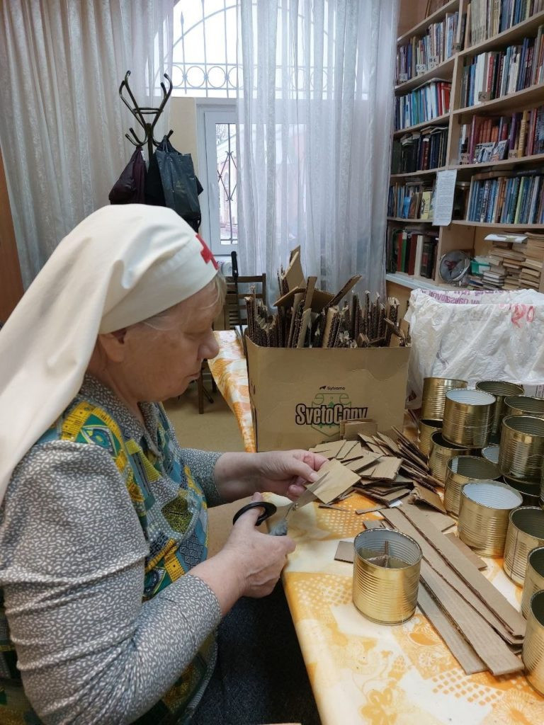 Сестры милосердия научились делать заготовки для окопных свечей. Их заливают парафином на производстве и отправляют в зону боевых действий. В 2023 году они создали 15 000 свечей, в 2024 — 12 500, а с начала 2025 года — 3 750. Спасибо за ваш труд!