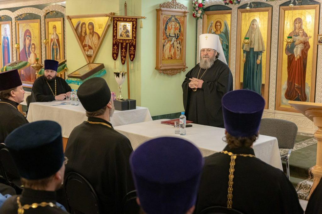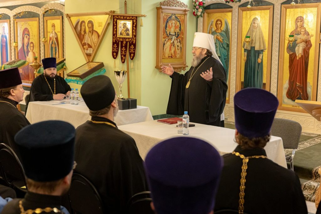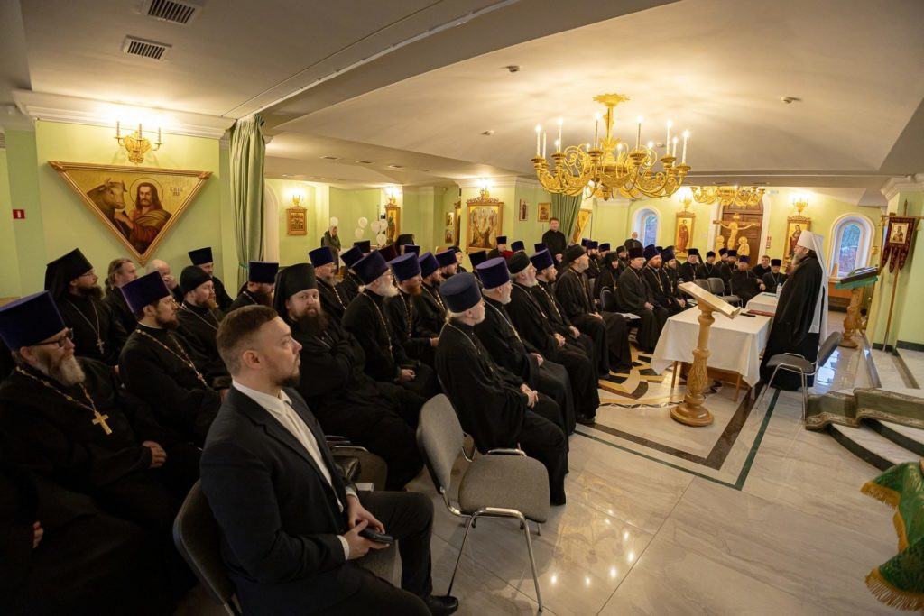 На расширенной встрече духовенства митрополит представил доклад с итогами деятельности епархии за 2025 год и огласил решения, принятые Епархиальным советом. Также о проделанной работе рассказали руководители профильных епархиальных отделов. В заключение были озвучены решения Священного Синода, подлежащие исполнению на епархиальном уровне, и поставлены задачи на предстоящий год.