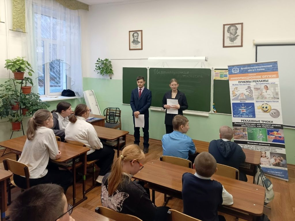 20 ноября волонтёры отряда за ЗОЖ «Атлантида» духовно-просветительского центра «Преображенский» провели интерактивную познавательную игру «Агент», направленную на профилактику негативных зависимостей, для учащихся 6-8 классов ГКОУ УР «ОШ №5» г. Глазова. Каждая из трёх подгрупп участников посетила тематические станции: «Алкоголь – оружие геноцида», «В туманном дыму» и «Информационная безопасность».