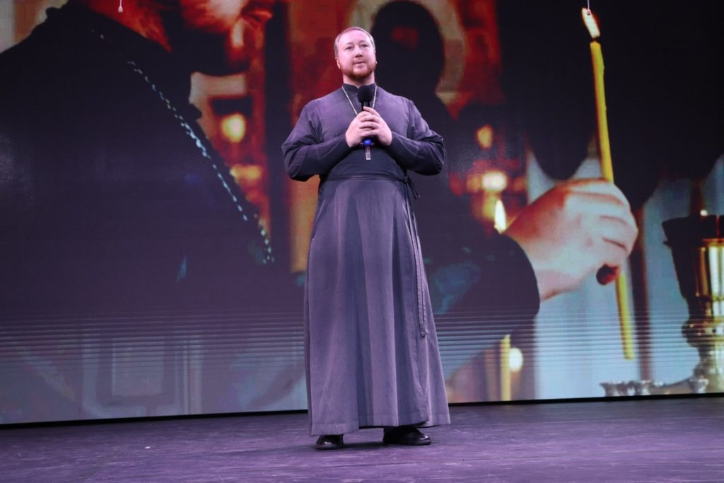 В качестве музыкального подарка отец Артемий спел песню на слова монаха Лаврентия (Подколзина) «За святую Русь помолюсь».