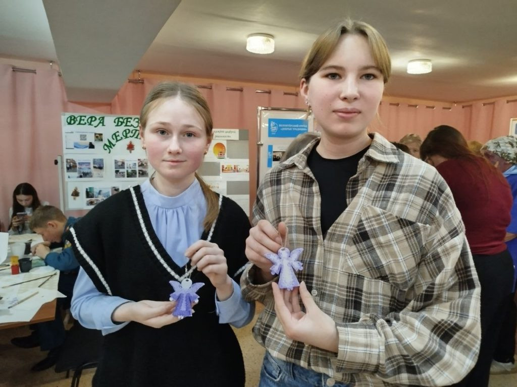 Пока жюри подводили итоги, прихожанки нашего храма организовали мастер-класс по росписи рождественской игрушки. Всего было раскрашено 90 рождественских ангелочков.