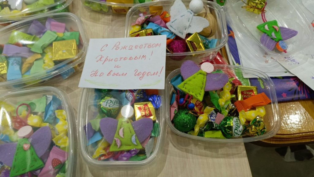 Беремся за дело. Письма, ангелочки, конфетки — одна коробка к отправке готова.