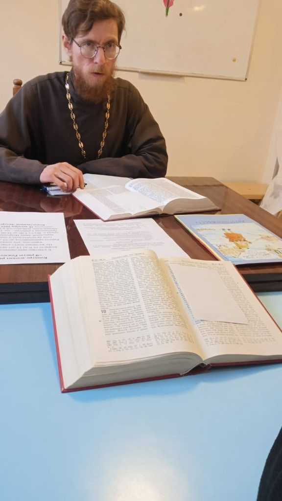 После богослужения духовное назидание продолжилось в Воскресной школе для взрослых. Вместе с отцом Иаковом была разобрана десятая глава Евангелия от Марка, углубляя понимание Слова Божия.