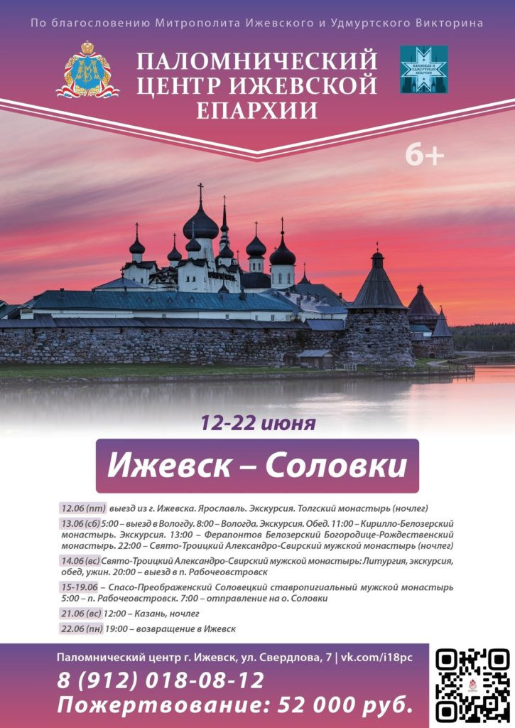 Паломнический центр Ижевской епархии приглашает в поездку на Соловецкие острова с 12 по 22 июня