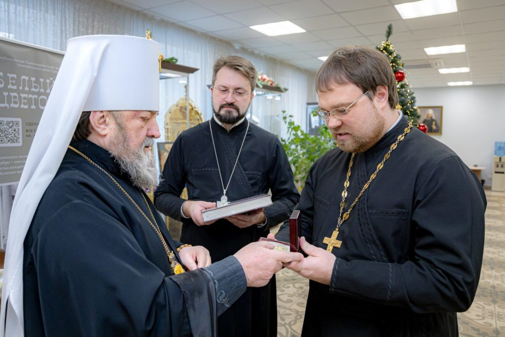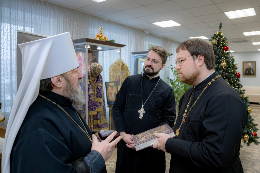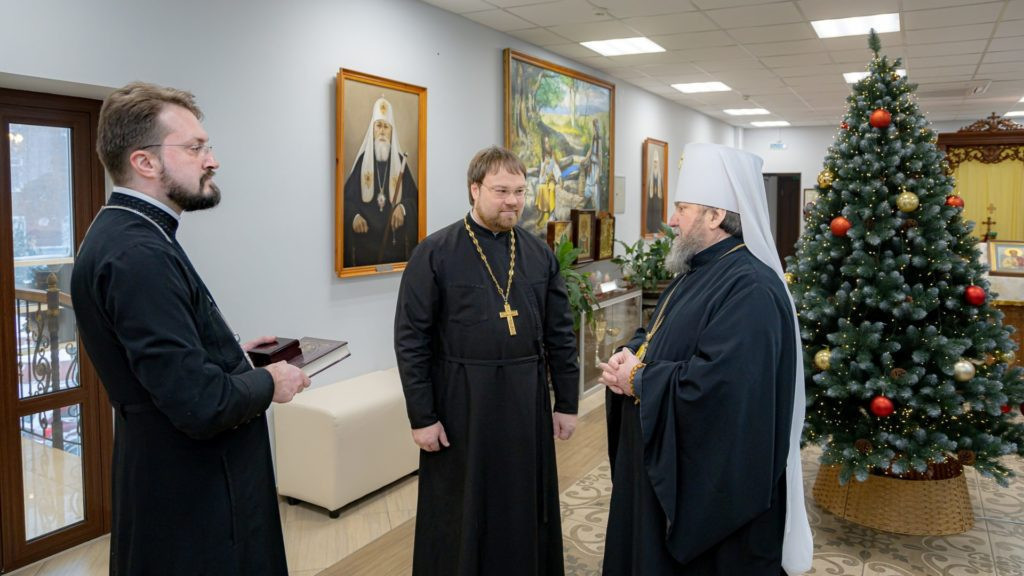 В ответ делегация из Беларуси вручила официальный подарок от митрополита Минского и Заславского Вениамина, Патриаршего Экзарха всея Беларуси – Евангелие, изданное Белорусским Экзархатом, а также юбилейную медаль преподобной Евфросинии Полоцкой, одной из главных святых Республики Беларусь. В ходе встречи обсуждались вопросы дальнейшего сотрудничества в сфере религиозного образования и катехизации.