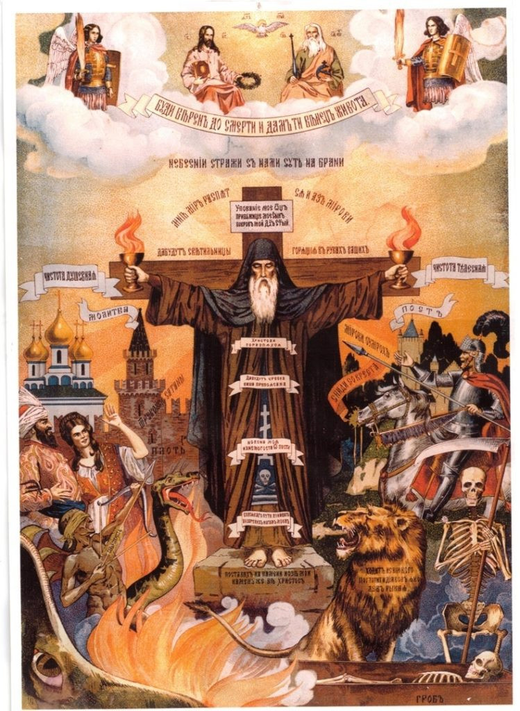 «Наконец, братия мои, укрепляйтесь Господом и могуществом силы Его. Облекитесь во всеоружие Божие, чтобы вам можно было стать против козней диавольских, потому что наша брань не против крови и плоти, но против начальств, против властей, против мироправителей тьмы века сего, против духов злобы поднебесной. Для сего приимите всеоружие Божие, дабы вы могли противостать в день злый и, все преодолев, устоять. Итак станьте, препоясав чресла ваши истиною и облекшись в броню праведности,