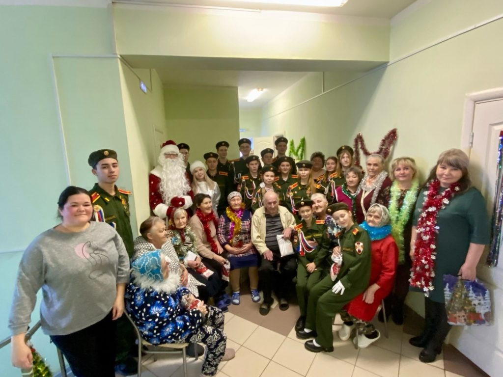 13 декабря, в преддверии новогодних дней, учащиеся 5 «К» и 9 «К» классов школы №49 г. Ижевска в составе юнармейского отряда, вместе с Дедушкой Морозом и Снегурочкой, посетили социальный дом для престарелых в селе Нюрдор-Котья. Визит был организован благотворительным фондом «СилаДобра».