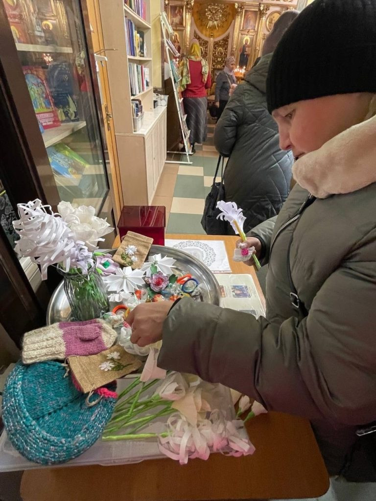 Талантливые воспитанники нашей Воскресной школы сотворили чудесные изделия собственными руками — резинки, заколки, броши, брелки, цветы и многое другое. Осознание того, что вместе мы делаем доброе дело — греет душу, радует сердце. Хорошо, что наши дети принимают участие в таких мероприятиях. Это значит, что мы растим добрых, милосердных и любящих детей.