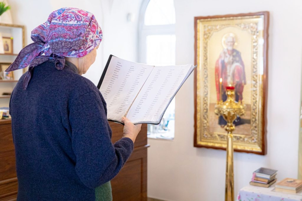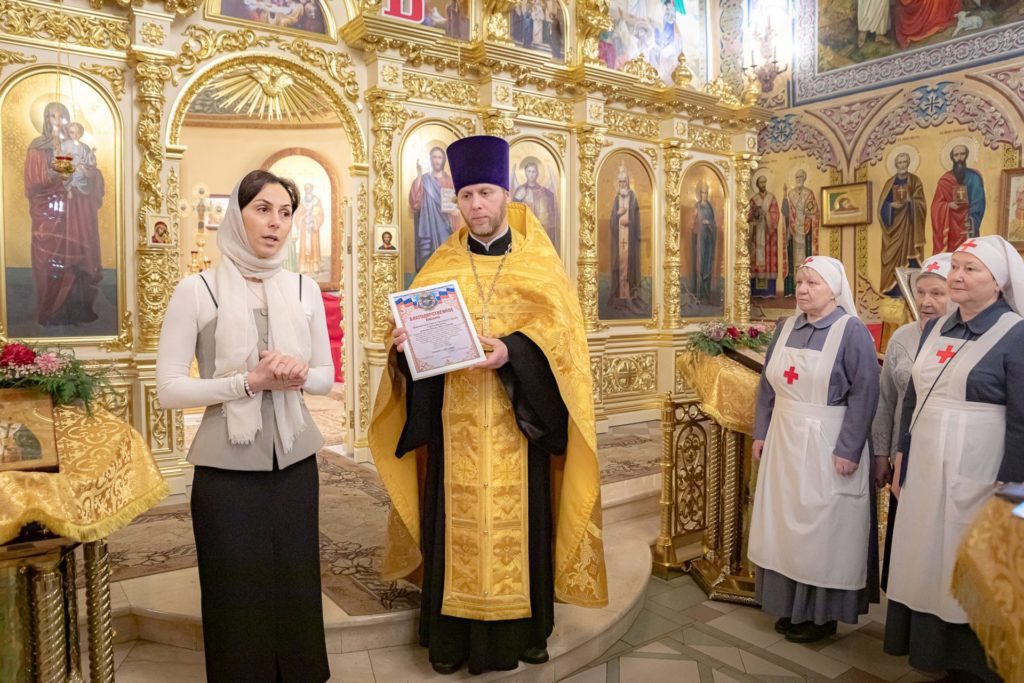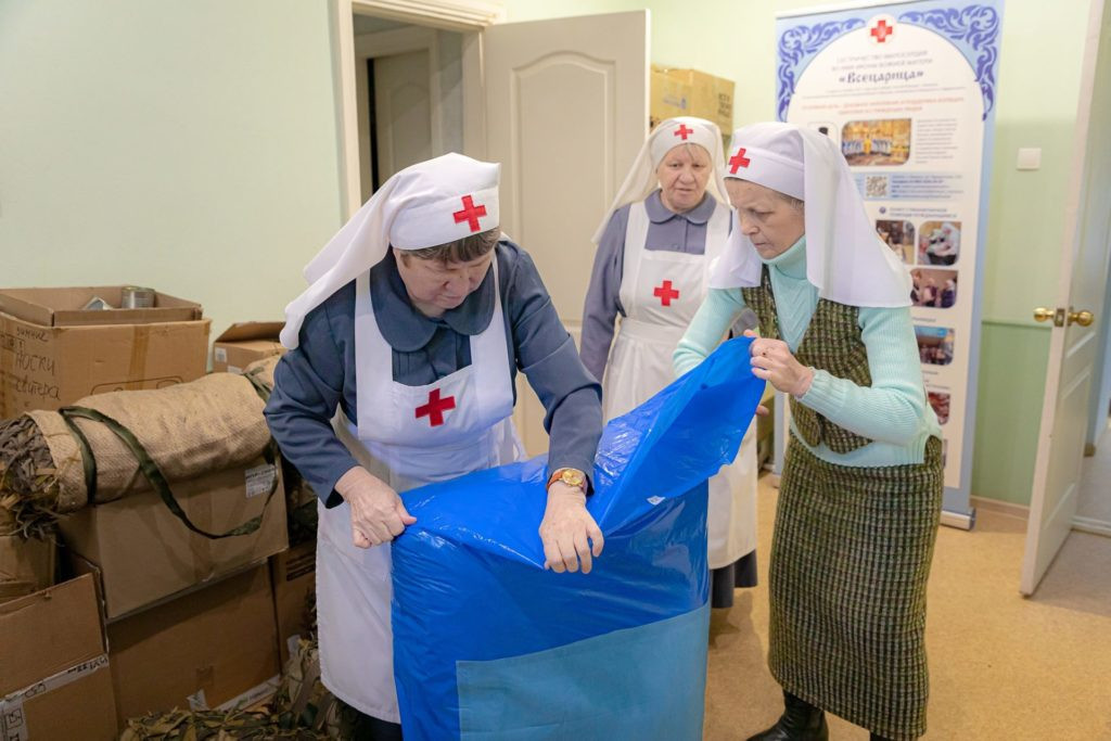 Дважды в неделю госпиталь посещают сёстры милосердия Свято-Троицкого храма. Большинство из них – зрелые женщины с жизненным опытом. Они идут к бойцам с материнской любовью. Сёстры ухаживают за болящими: кормят, помогают медицинскому персоналу в уходе, общаются, оказывают моральную поддержку, приглашают на молебны. Многие бойцы благодарны за эти визиты, для них это становится «отдушиной», возможностью почувствовать тёплое, живое человеческое общение.