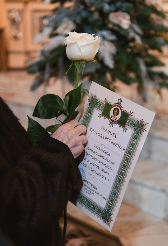 В этот день благодарственными грамотами от митрополита Ижевского и Удмуртского Викторина за жертвенные труды были награждены волонтеры собора Александра Невского.