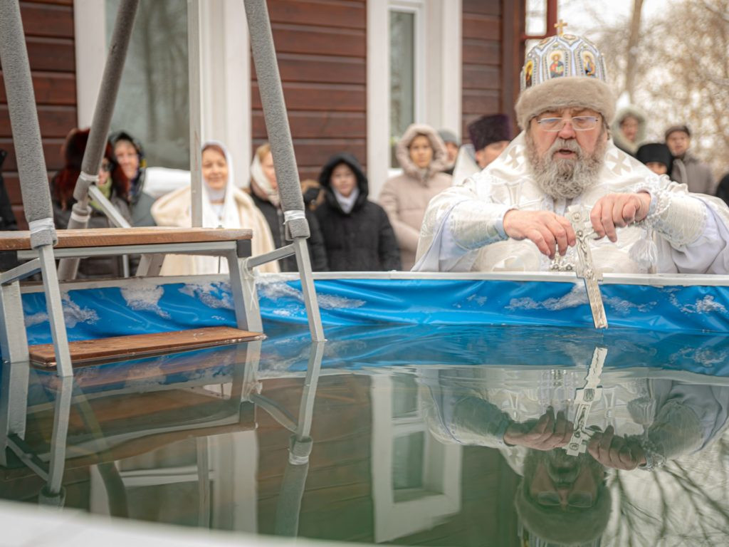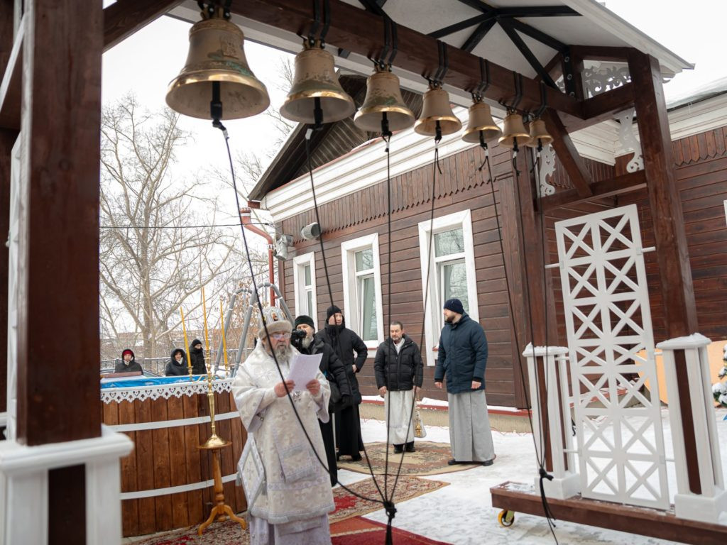 Также в этот день на территории храма святой мученицы Татианы митрополит Викторин освятил специально оборудованную для окунания купель и переносную звонницу с новыми колоколами. Все желающие смогут позвонить в колокола и окунуться в купели 18 и 19 января до полуночи.