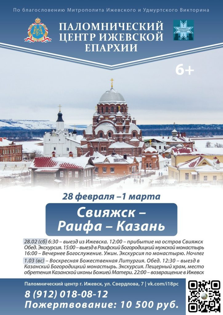 С 28 февраля по 1 марта приглашаем в поездку по маршруту: Свияжск-Раифа-Казань.