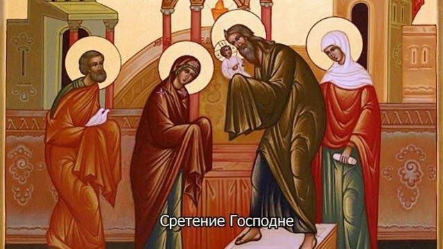 Слово «сретение» в переводе с церковнославянского означает «встреча». В христианской традиции это прежде всего встреча праведного старца Симеона с Богом в лице принесенного в храм младенца Иисуса. Событие произошло на сороковой день после Рождества Христова, когда Мария и Иосиф, исполняя предписание Моисеева закона, принесли первенца в храм для посвящения Богу и принесли жертву — двух птенцов голубиных.