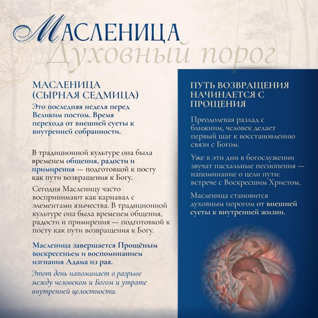 Синодальный миссионерский отдел подготовил материалы, которые помогут глубже понять смысл Масленичной недели и правильно подготовиться к Великому посту.