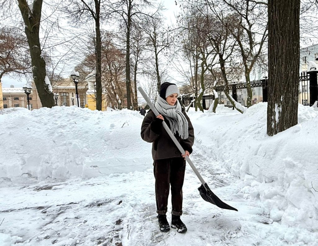 Студенты медики приняли участие в уборке снега на территории собора Александра Невского