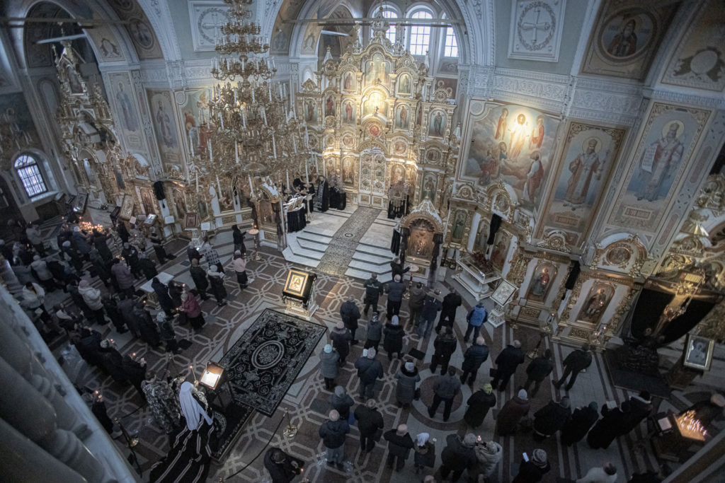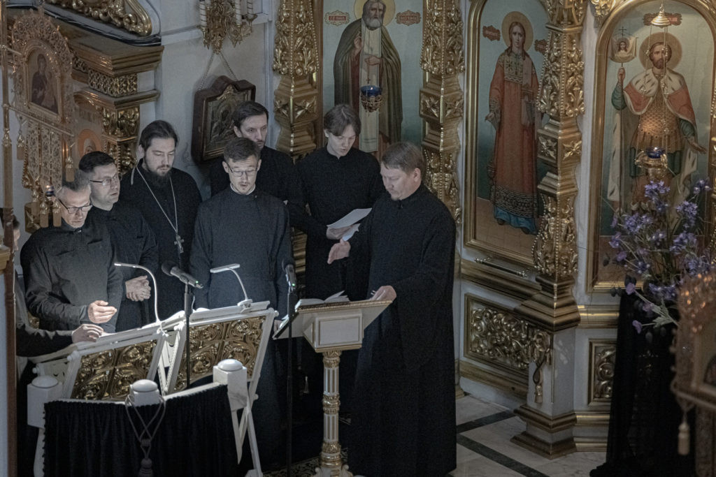 Песнопения исполняет хор духовенства Михаило-Архангельского кафедрального собора.