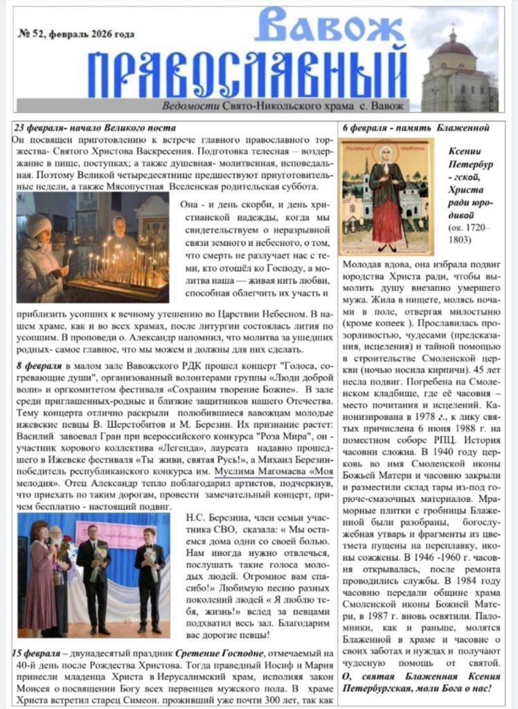 Вышел новый номер Приходского листка Вавож Православный. Номер 52