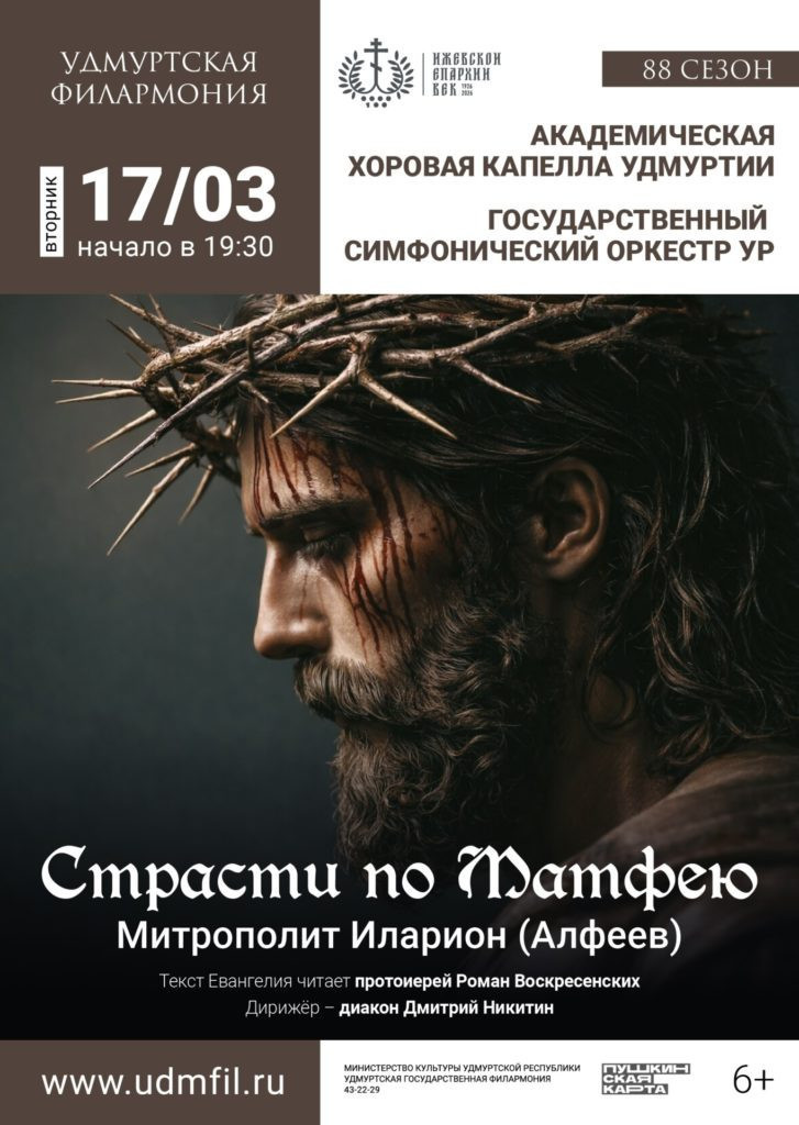 17 марта в зале Удмуртской государственной филармонии вновь прозвучит оратория «Страсти по Матфею» митрополита Илариона (Алфеева).