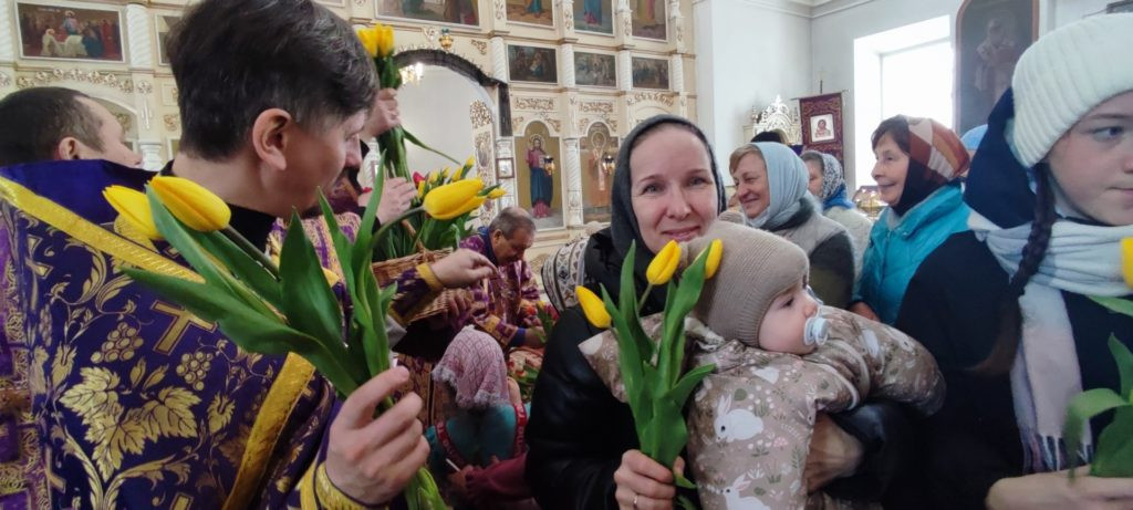 Сегодня священники и мужская половина прихода нашего храма поздравили с Международным женским днем всех сестер и матерей. Настоятель храма — иерей Илия, в своем поздравлении сравнил душу женщины с прекрасным и благоухающим цветком. Ваши молитвы и добрые дела – есть истинное украшение мира и «благоухание» перед Богом.
