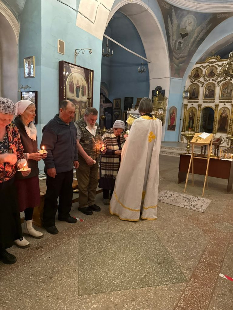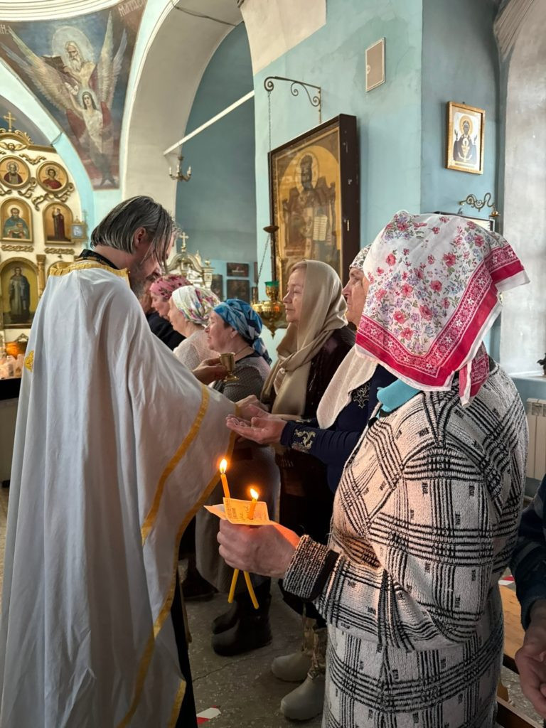 Вчера в храме Покрова Пресвятой Богородицы в с. Июльское состоялось Соборование (Елеосвящение) — одно из семи таинств Православной Церкви, во время которого священник помазывает верующего освящённым елеем призывая благодать Божию для исцеления душевных и телесных недугов.