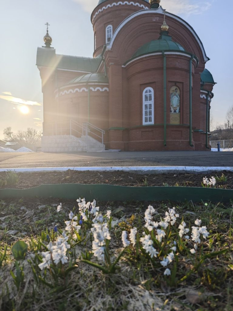 Весна пришла. Радостно видеть,как оживает природа. Появились первые цветочки на территории храма.