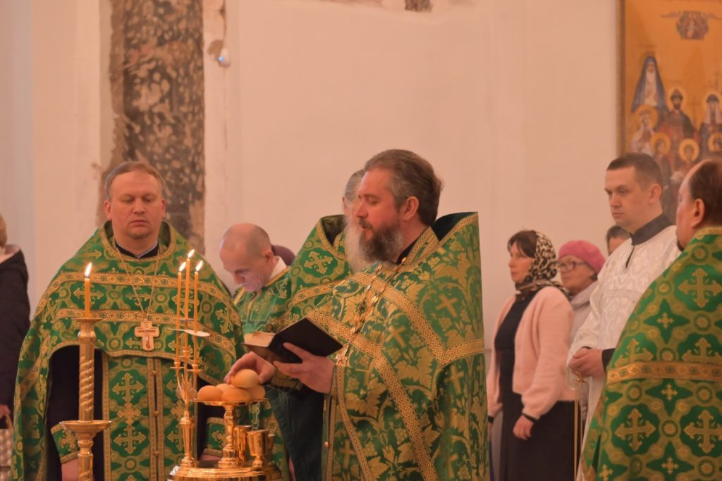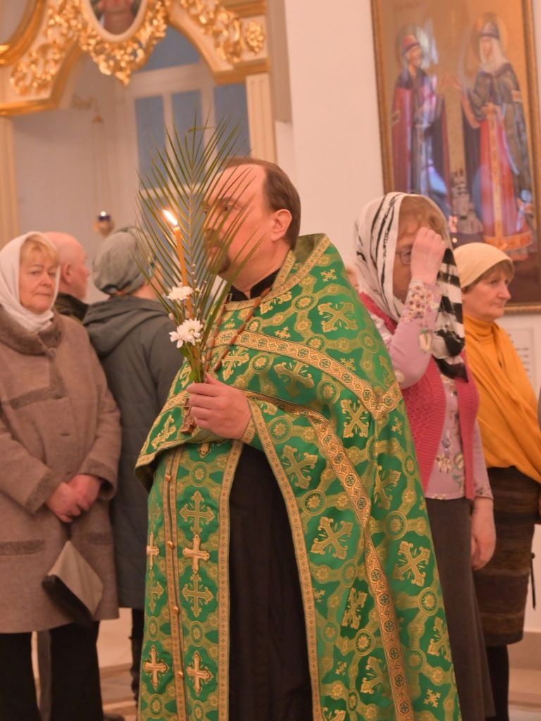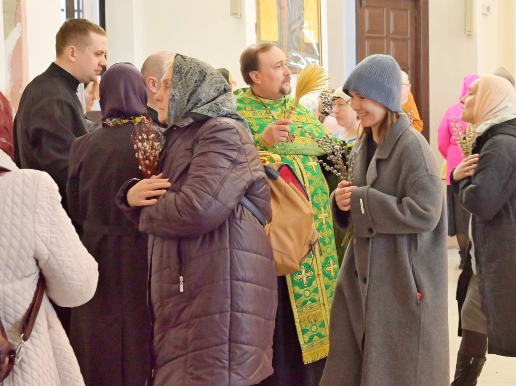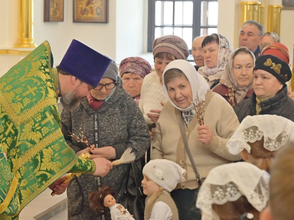 5 апреля, Неделя пальмовых ветвей (Вербное воскресенье), день праздника Входа Господня в Иерусалим, Божественную Литургию Иоанна Златоустого в Благовещенском соборе совершил настоятель протоиерей Максим Женихов. По окончании богослужения настоятель поздравил прихожан с Праздником, и совершил чин освящения ваий.